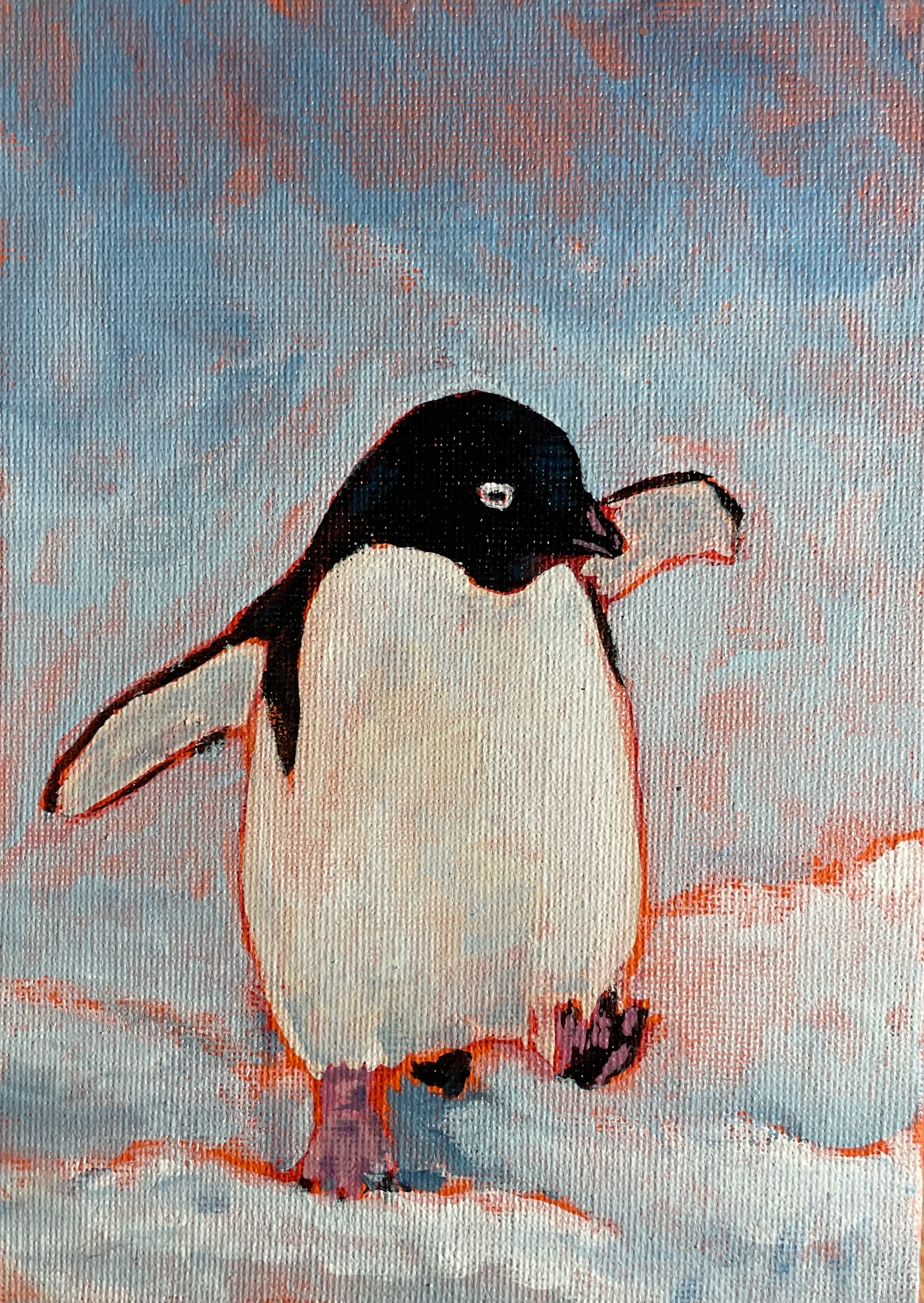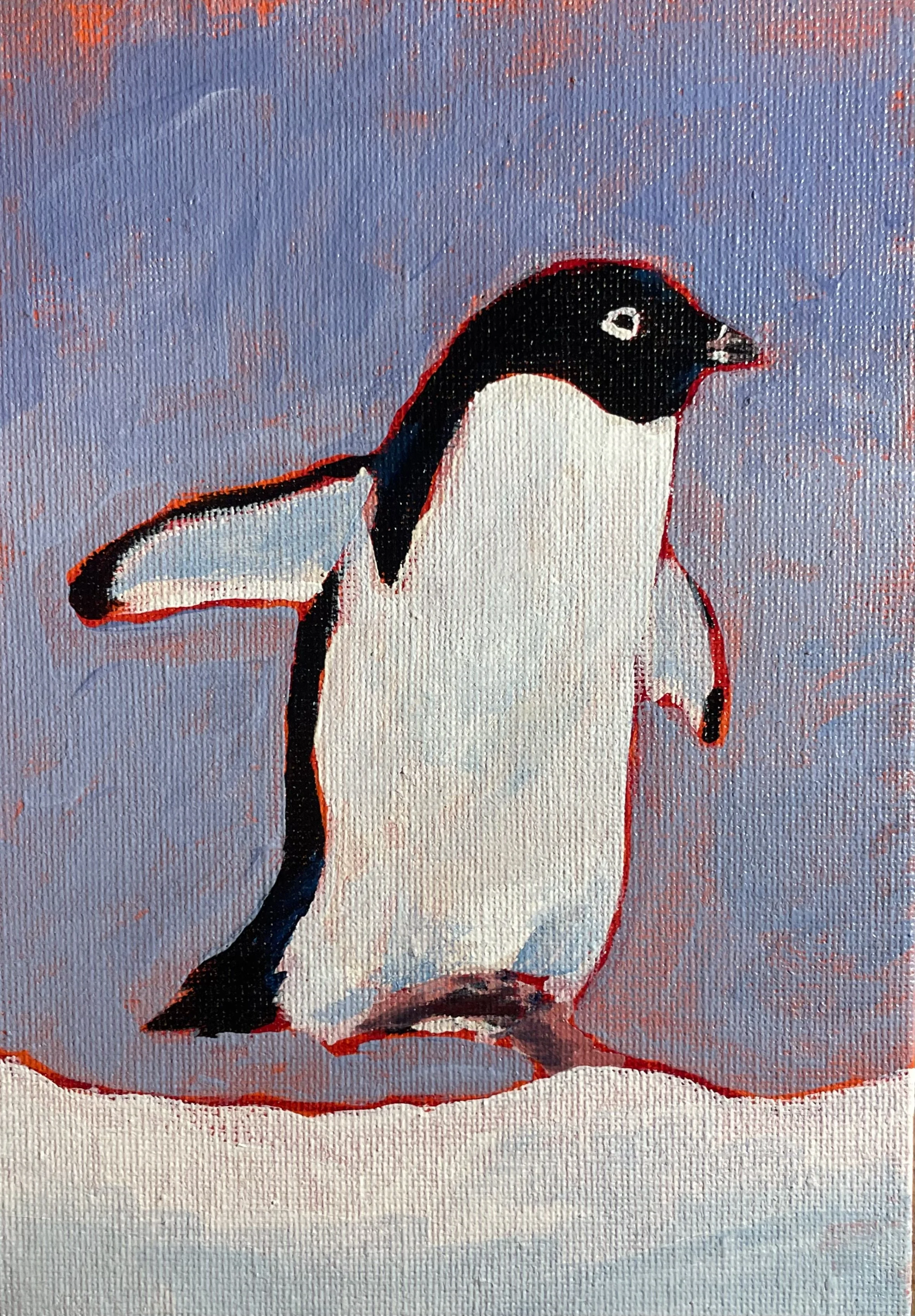 Penguin Study 2, 2024, Acrylic on 7” x 5” Canvas Panel