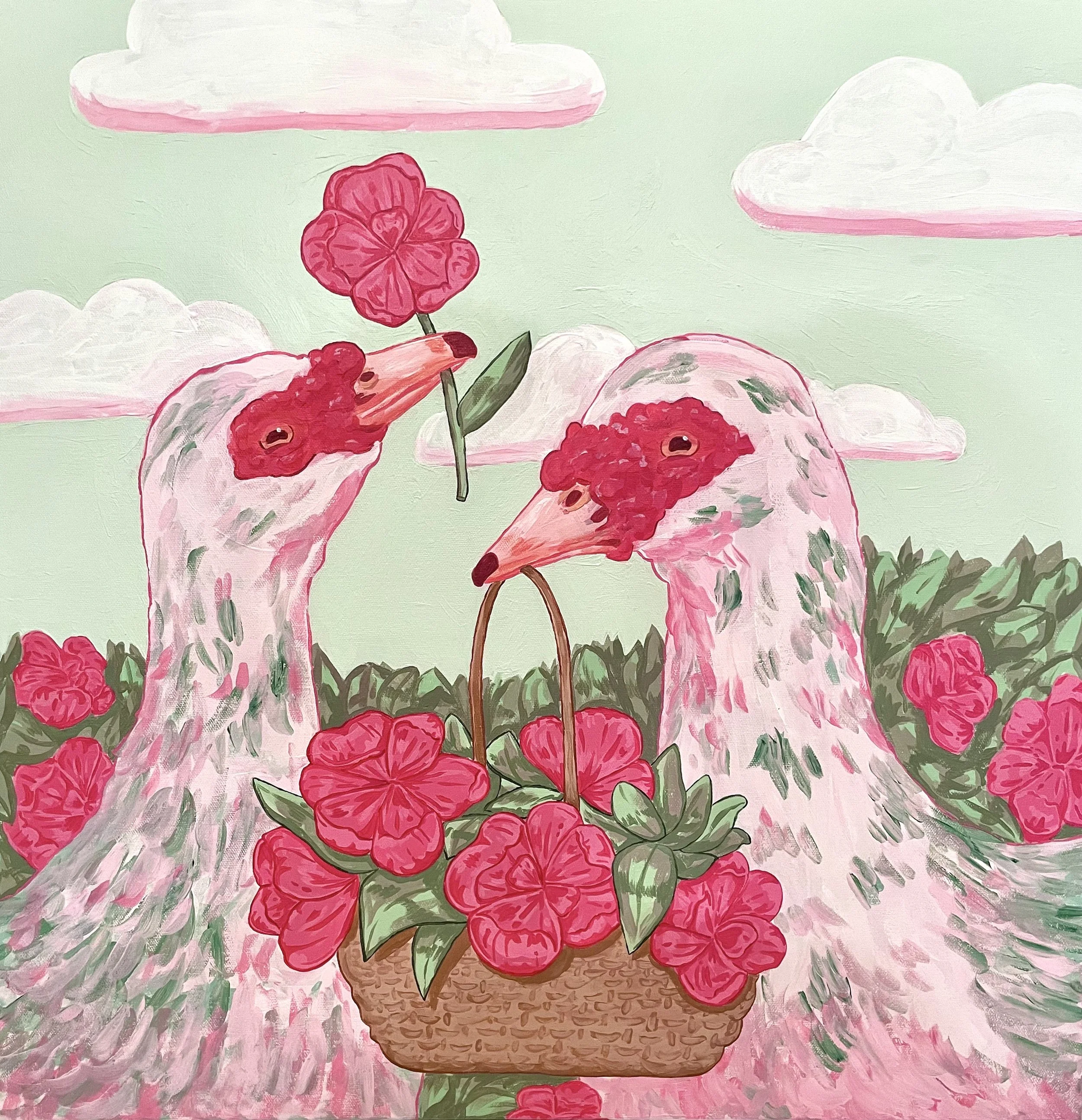 Ducks Love Flowers, 2021, Acrylic on 24"x24" Canvas