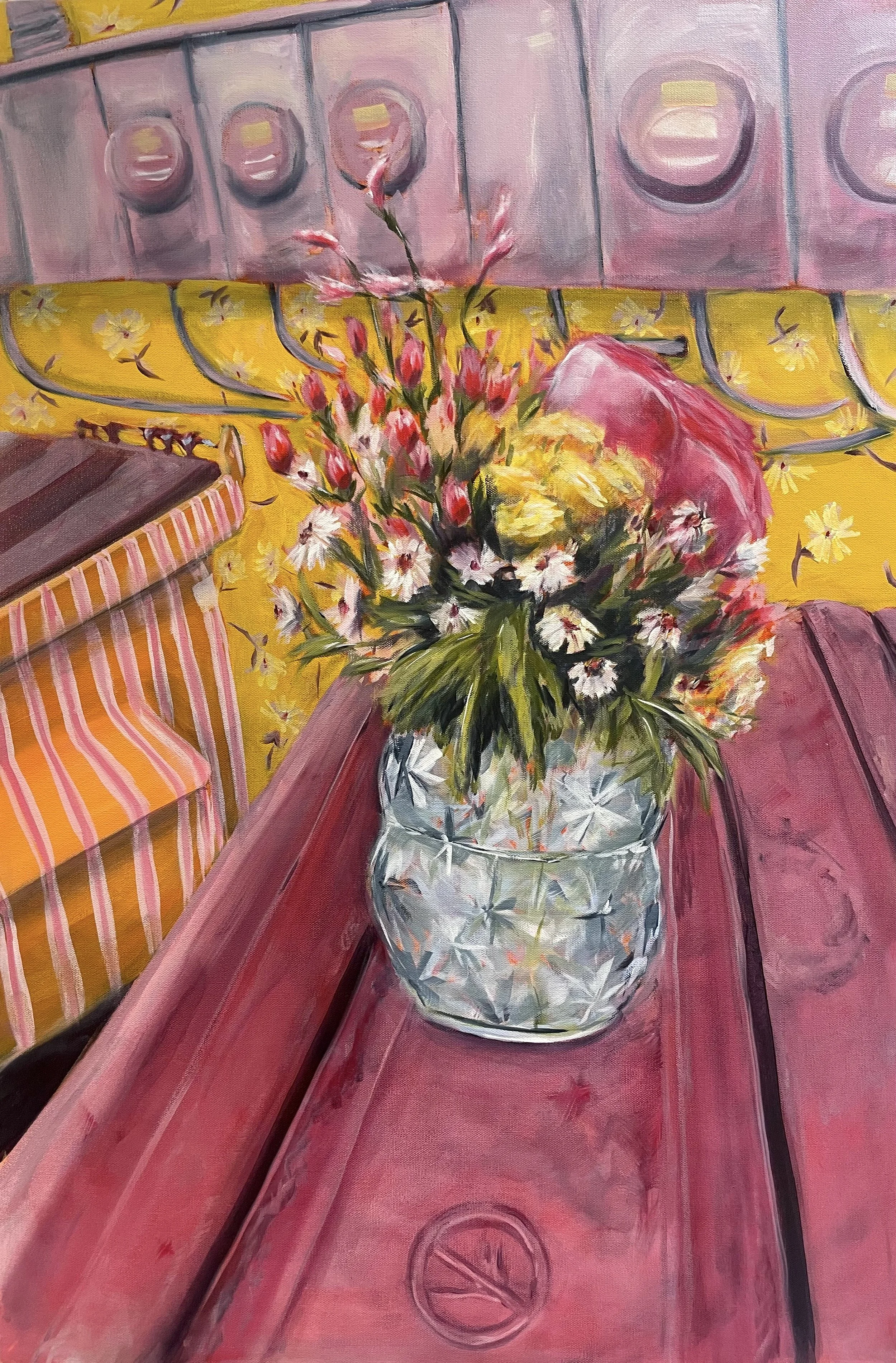 Journals of Joy: Dumpster Alley Flowers, 2024, Oil on 36" x 24" Canvas